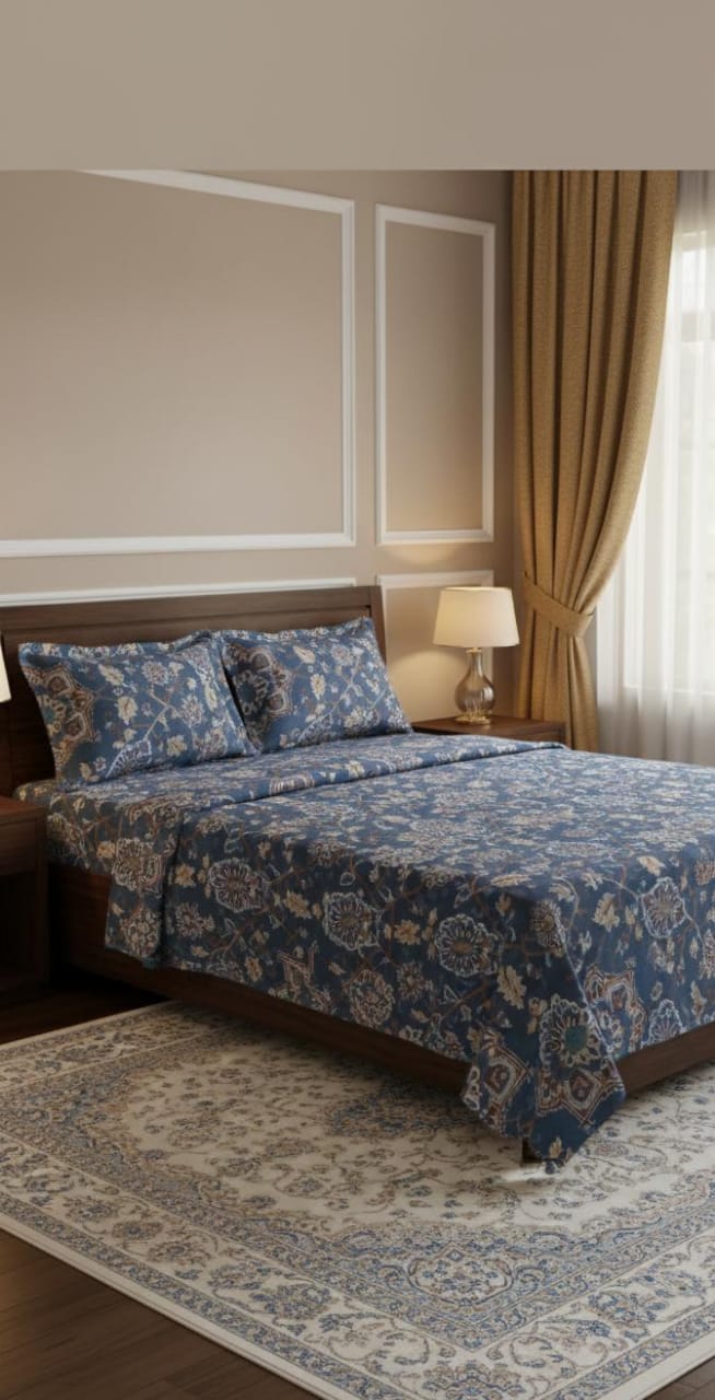 Experience comfort and luxury with this double bed sheet set made from 100% pure cotton. The set includes a full-size double bed sheet along with two matching pillow covers, giving your bedroom a coordinated and elegant look.