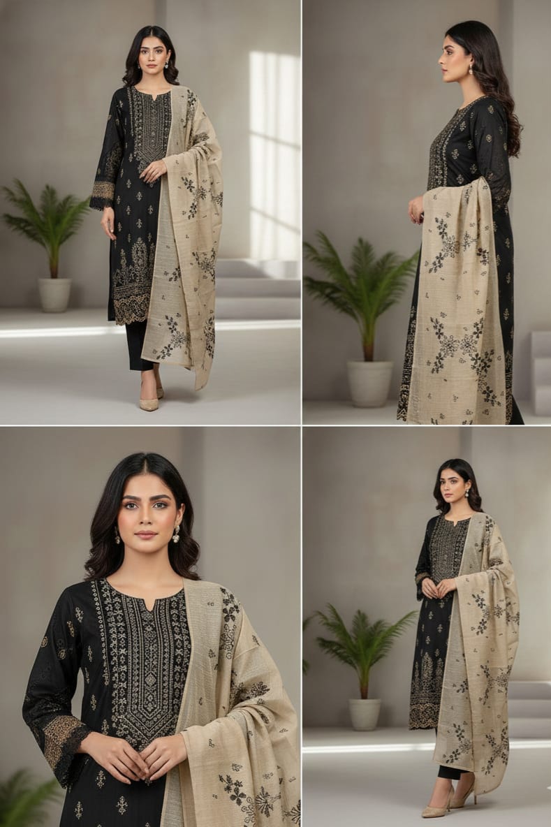 Be the first to review “Stitched embroided 3 piece. Thread embroided lawn shirt. Masoori lawn embroided dupatta. Plain dyed trouser. Size : Small”